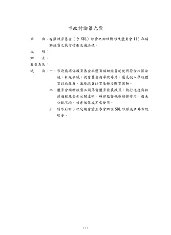議 決:一、市府應確保教育基金與體育補助經費的使用符合相關法