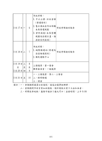 備註:一、會期期間議員如欲請假,請逕洽議事組辦理。