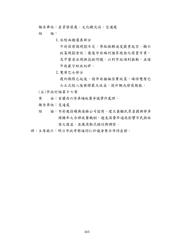 肆、主席裁示:明日市政考察請同仁於議會集合準時出發。