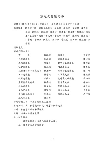 出席議員:議長童子瑋、副議長楊秀玉、蔡旺璉、連恩典、藍敏煌、韓世昱、