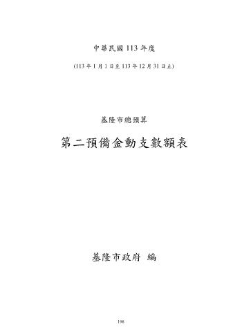 中華民國 113 年度 (113 年 1 月 1 日至 113 年 12 月 31 日止) 基隆市總預算 第二預備金動支數額表 基隆市政府 編 198