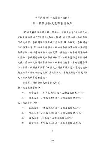 113 年度基隆市總預算第二預備金,前經貴會第 20 屆第 2 次