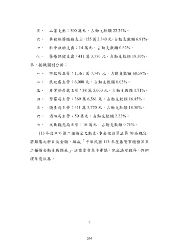 六、 消防局主管:50 萬元,占動支數額 2.22%。