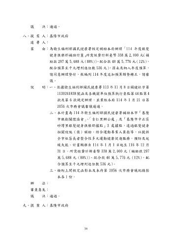 案 由:為衛生福利部國民健康署核定補助本府辦理「114 年度銀髮