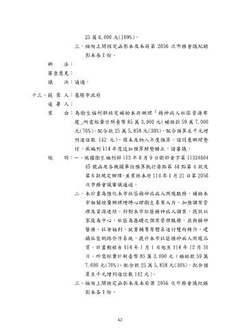 案 由:為衛生福利部核定補助本府辦理「精神病人社區資源布
