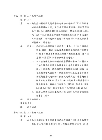 案 由:為文化部文化資產局核定補助本府辦理「114 年度基隆市