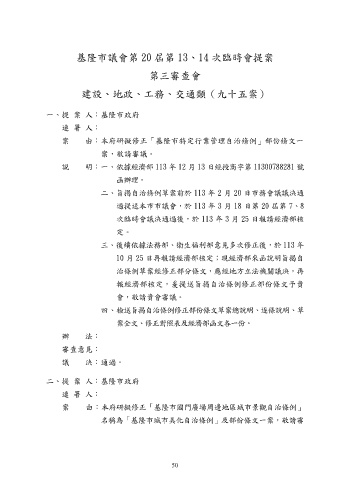 基隆市議會第 20 屆第 13、14 次臨時會提案
