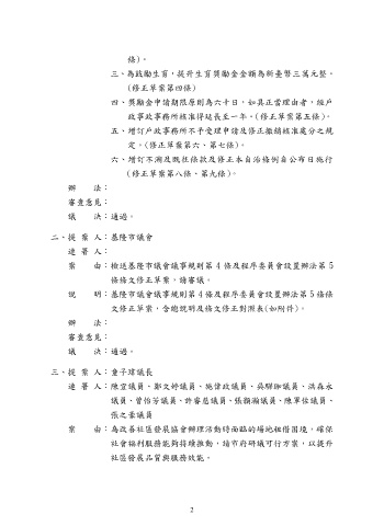 案 由:檢送基隆市議會議事規則第 4 條及程序委員會設置辦法第 5
