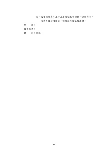 四、大香港候車亭上方土石坍塌至今封鎖一邊候車亭, 候車亭將如何修建,請相關單位協助處理。 辦 法: 審查意見: 議 決:通過。 ~84~ 84