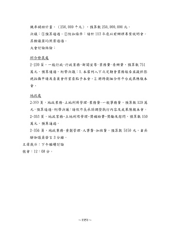 決議:①預算通過。②附加條件:請於 113 年底以前辦理專案說明會。