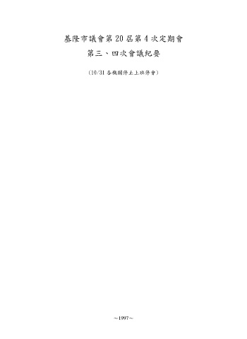 基隆市議會第 20 屆第 4 次定期會 第三、四次會議紀要 (10/31 各機關停止上班停會) ~1997~