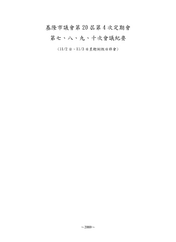 基隆市議會第 20 屆第 4 次定期會 第七、八、九、十次會議紀要 (11/2 日、11/3 日星期例假日停會) ~2000~