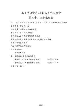 基隆市議會第 20 屆第 4 次定期會