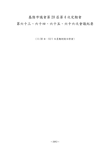 基隆市議會第 20 屆第 4 次定期會 第六十三、六十四、六十五、六十六次會議紀要 (11/30 日、12/1 日星期例假日停會) ~2052~