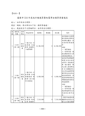 基隆市 114 年度地方總預算暨附屬單位預算案審議表