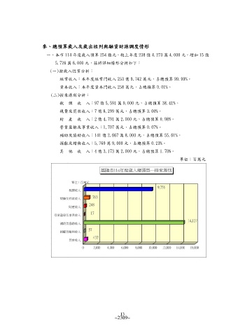 一、 本市 114 年度歲入預算 254 億元,較上年度 238 億 4,273 萬 4,000 元,增加 15 億