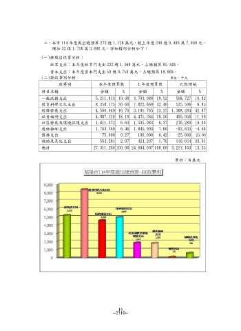 經常支出:本年度經常門支出 222 億 1,368 萬元,占總預算 81.34%。