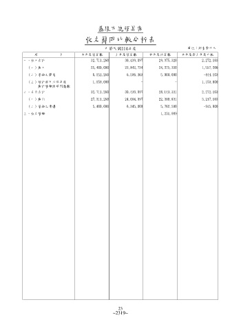 (一)歲入 25,400,000 23,842,734 24,375,320 1,557,266
