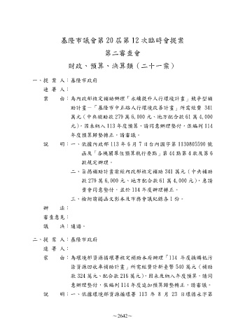 基隆市議會第 20 屆第 12 次臨時會提案