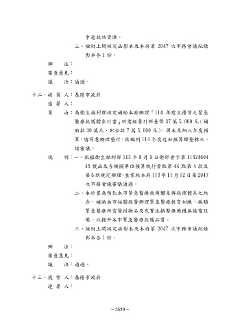 案 由:為衛生福利部核定補助本府辦理「114 年建立優質之緊急
