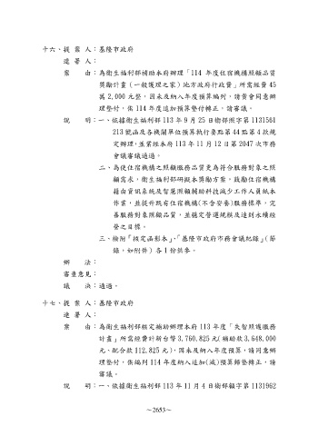 案 由:為衛生福利部補助本府辦理「114 年度住宿機構照顧品質