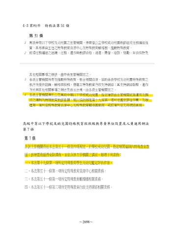 4-3 案附件 特教法第 51 條 高級中等以下學校及帅兒園特殊教育班班級與專責單位設置及人員進用辦法 第 7 條 ~2698~