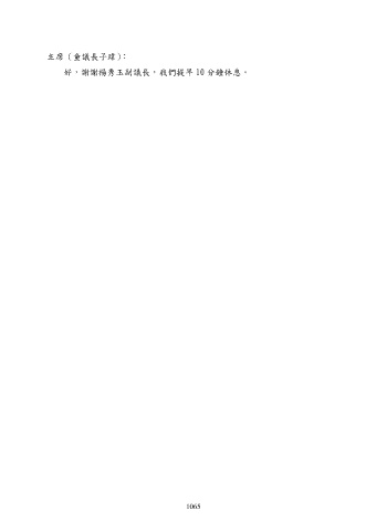 主席(童議長子瑋): 好,謝謝楊秀玉副議長,我們提早 10 分鐘休息。 1065
