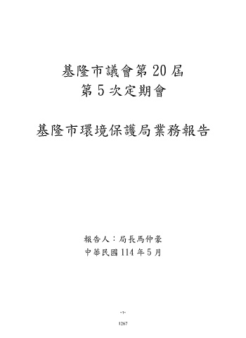 基隆市議會第 20 屆 第 5 次定期會 基隆市環境保護局業務報告 報告人:局長馬仲豪 中華民國 114 年 5 月 ~1~ 1267
