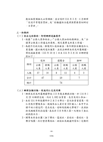 學校退撫業務。113 年 10 月 1 日至 114 年 3 月 31 日辦理情