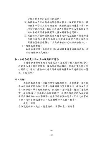 招聘情況,謹附「基隆市政府及所屬機關職員出缺及遴補情形一覽