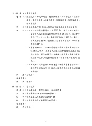 建請市府提高本市 65 歲以上職業工會投保者之健保補