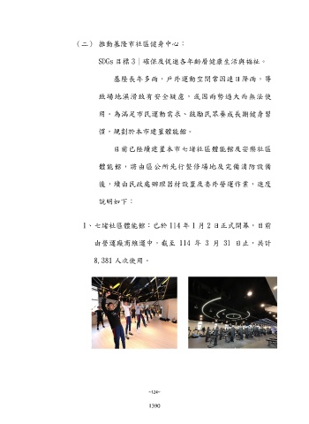 1、七堵社區體能館:已於 114 年 1 月 2 日正式開幕,目前