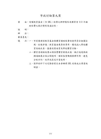 議 決:一、市府應確保教育基金與體育補助經費的使用符合相關法
