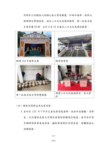 1.本所自 113 年下半年已委託專業建築師,就本所各禮廳、家祭