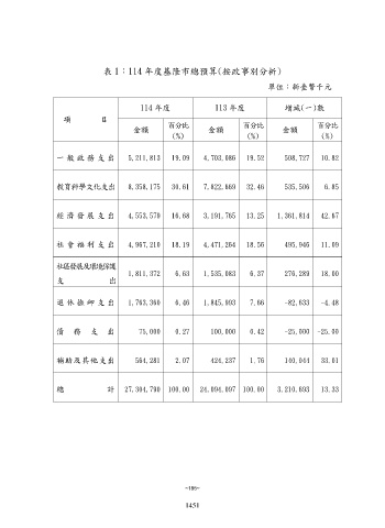 一 般 政 務 支 出 5,211,813 19.09 4,703,086 19.52 508,727 10.82