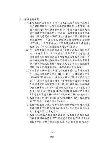 學中心修建營運移轉案」、交通處「基隆市東岸立體停車