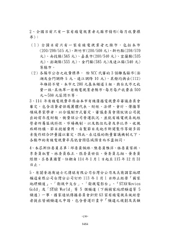 3、114 年有線電視費率係由本市有線廣播電視費率審議委員會