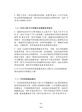 1、基隆市政府官方 LINE 帳號正式上線 9 年,截至 114 年 4 月