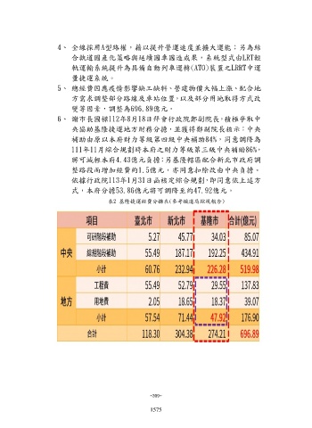 整路段而增加經費約1.5億元,亦同意扣除改由中央負擔。