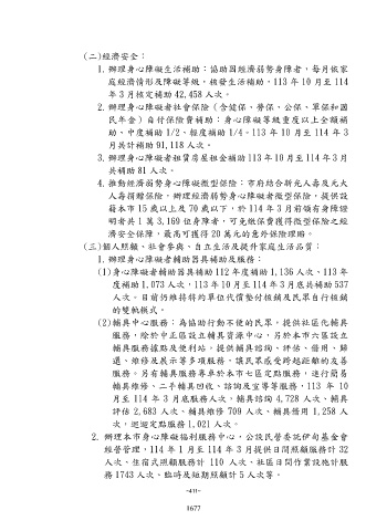 1.辦理身心障礙生活補助:協助因經濟弱勢身障者,每月依家