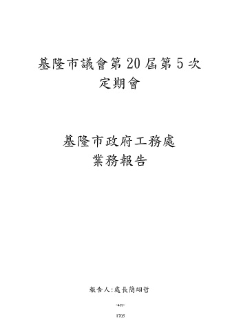 基隆市議會第 20 屆第 5 次 定期會 基隆市政府工務處 業務報告 報告人:處長簡翊哲 ~439~ 1705