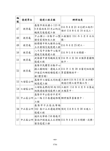 56 中正區公所 342 巷口土石邊坡滑動 預定 114 年 6 月 30 日竣工。