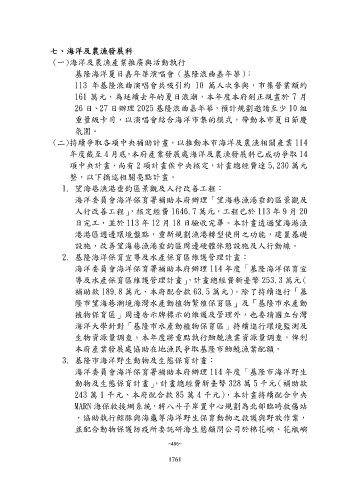 (二)持續爭取各項中央補助計畫,以推動本市海洋及農漁相關產業 114