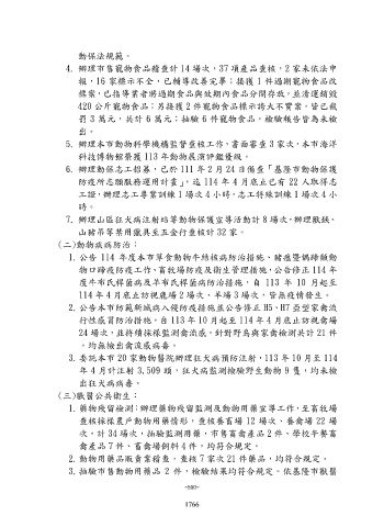 4. 辦理市售寵物食品稽查計 14 場次,37 項產品查核,2 家未依法申