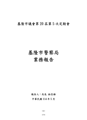 基隆市議會第 20 屆第 5 次定期會 基隆市警察局 業務報告 報告人:局長 林信雄 中華民國 114 年 5 月 ~509~ 1775