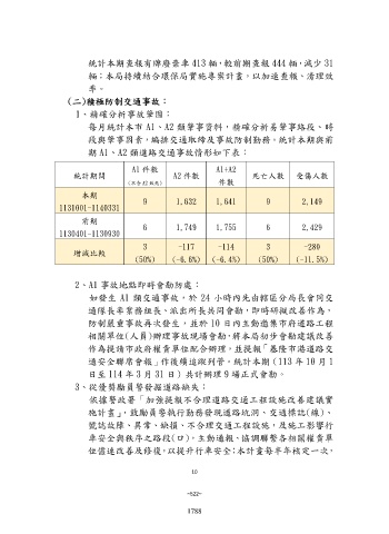 通安全聯席會報」作後續追蹤列管。統計本期(113 年 10 月 1