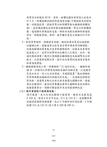 3、積極推動偵查工具:持續推動「AI 巡防系統」,積極防堵