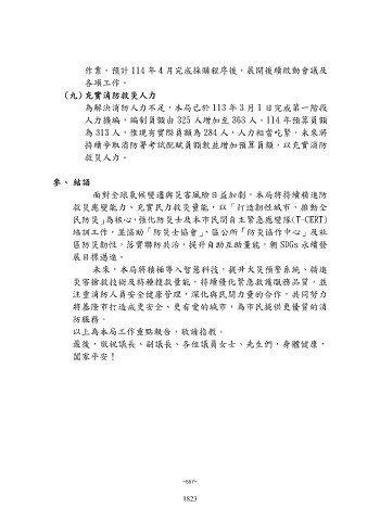 為解決消防人力不足,本局已於 113 年 3 月 1 日完成第一階段
