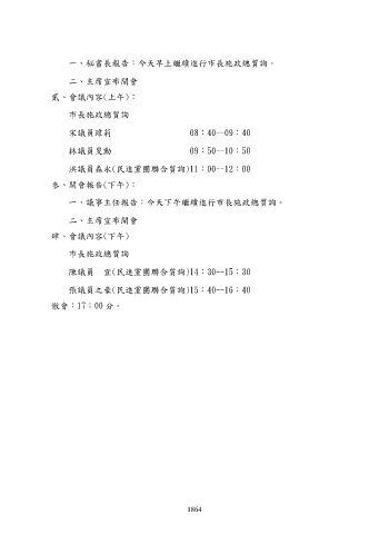 一、秘書長報告:今天早上繼續進行市長施政總質詢。