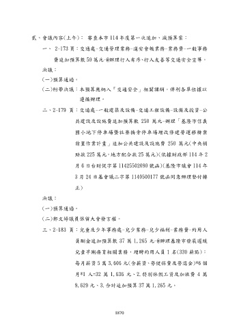 貳、會議內容(上午): 審查本市 114 年度第一次追加、減預算案: